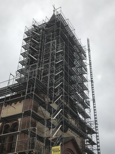 Im Frühjahr des Jahres 1844 wurde die prot. Kirche nach sechsjähriger Bauzeit ihrer Bestimmung übergeben. Das Neuromanische Gebäude mit dem großen Westportal wurde von dem, damals berühmten, Architekten Voit aus Speyer geplant. Die Kirche ist mit ihrem 46m hohen Turm das höchste Bauwerk im Dorf. Im Laufe der Zeit wurde sie mehrmals renoviert. Die letzten Maßnahmen waren1972 außen und 1990 innen. Seit Anfang dieses Jahres wird der Kirchturm saniert. Gerne hätten wir zum Jubiläum den Kirchturm in neuem Glanz präsentiert, doch leider verschiebt sich der Abbau des Gerüstes, aufgrund verschiedener Verzögerungen während der Bauphase.